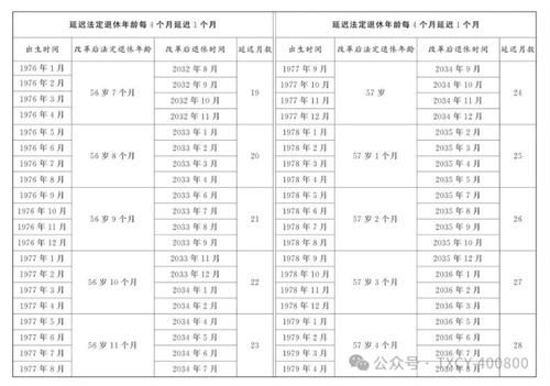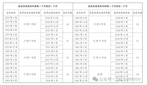 3.原法定退休年齡五十周歲的女職工延遲法定退休年齡對照表
